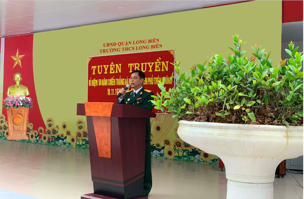 Nhân dịp kỷ niệm 50 năm chiến thắng “Hà Nội – Điện Biên Phủ trên không” (tháng 12/1972 – tháng 12/2022) nhiều hoạt động kỷ niệm ý nghĩa đã được diễn ra tại trường THCS Long Biên. Nhà trường đã tổ chức giao lưu giữa học sinh và các bác cựu chiến binh phường Long Biên.Thông qua việc giao lưu các em học sinh được ôn lại truyền thống anh hùng bất khuất chống giặc ngoại xâm của dân tộc ta, truyền thống anh hùng của Quân đội Nhân dân Việt Nam; đồng thời giáo dục và bồi dưỡng tinh thần yêu nước của các thế hệ học sinh.